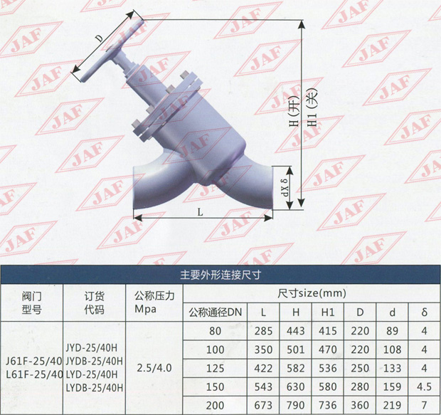 適用于公稱壓力為2.5/4.OMPa.公稱通徑為DN80 -DN200閥體材料為鋼質(zhì)焊接的對焊直流截止閥和節(jié)流閥。
