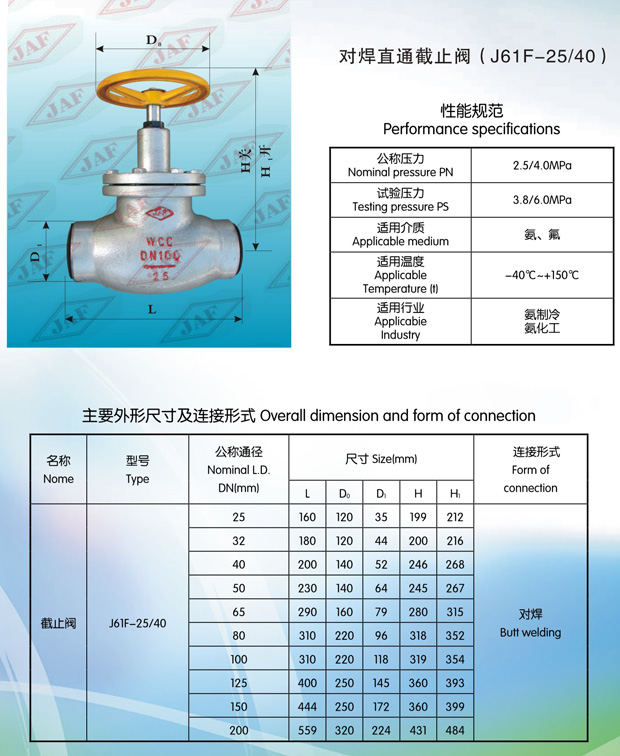 中南焦作氨閥股份有限公司是國家高新技術企業(yè),《氨用截止閥和升降式止回閥》國家標準起草單位,中國閥門協(xié)會、中國制冷協(xié)會常任理事單位,焦作市閥門工程技術研究中心,公司具有四十余年的生產歷史,擁有雄厚的技術力量和完善的生產、檢測設施,在同行業(yè)率先取得了ISO9001質量管理體系認證和特種設備(壓力管道元件)制造許可證,1985年注冊的“JAF”商標,被譽為“中國制冷氨閥門”品牌。