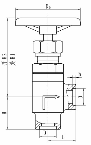 | 閥門型號 | 公稱壓力 Mpa | 公稱通徑 DN | L | H | H1 | H2 | D0 | D | h | 重量 kg | |